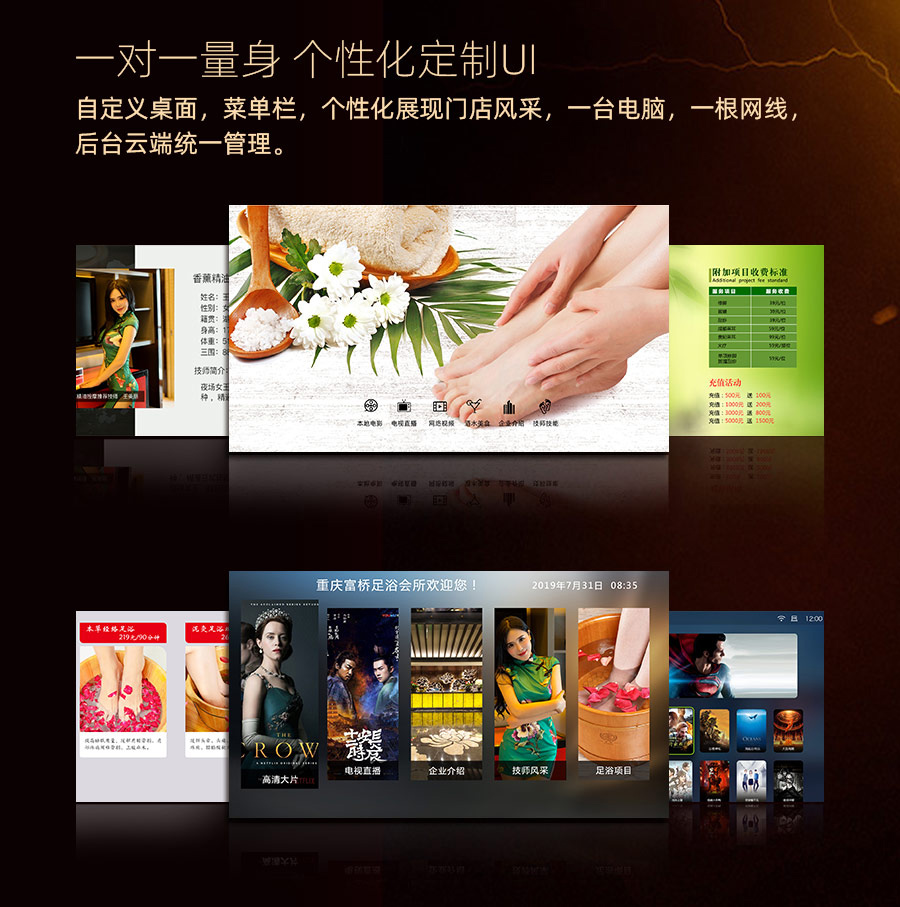 影圖騰投影商用機(jī)型全部搭載影圖騰云系統(tǒng),支持自定義主界面,跑馬燈廣告,開(kāi)機(jī)視頻,充分滿足店鋪的個(gè)性化需求,自由度高。