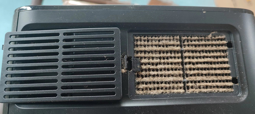 當投影儀開始工作時,散熱系統(tǒng)的空氣循環(huán)換氣使很容易將這些絮狀灰塵吸入機器內(nèi)部和表面